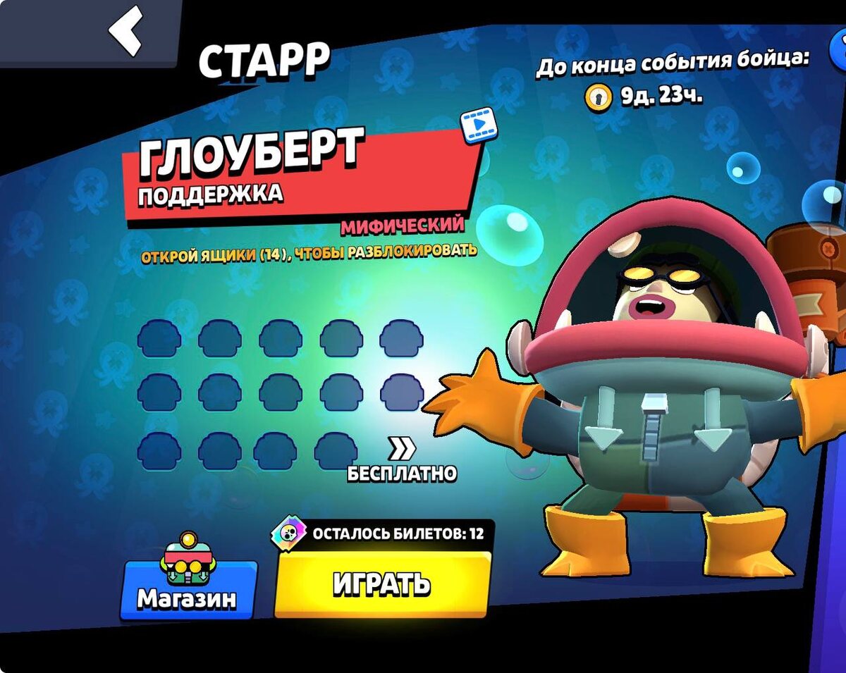 Событие раннего доступа на нового мифического персонажа Глоуберта уже в игре. Ещё раз напомним вам о сути: — Все игроки получат 12 билетов в начале события; — Каждый день игроки будут получать по 2 билета; — Максимальное количество билетов за все событие равняется 30 штукам; — 1 ящик = 2 победы; — Для получения бравлера нужно открыть 14 ящиков; — За все событие мы получим 3 бесплатных ящика; — В магазине можно приобрести персонажа сразу с пассивками и гаджетами, а также ящики по отдельности; — Если у вас не заходит в игру, выключите DNS и включите приложение для смены местоположения на три буквы. ✅Новости по Clash Royale - ТЫК 💬Новости по Roblox - ТЫК Мир Supercell. Подписаться