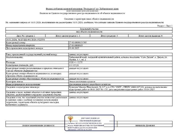 Название: Земельный участок с кадастровым номером 27:01:0000035:505 площадь 1328 по адресу Хабаровский край, Амурский муниципальный район