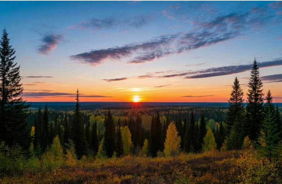 Рассвет над Сибирской тайгой родился в муках, словно мать, дарующая жизнь ребёнку сквозь боль и страдания.