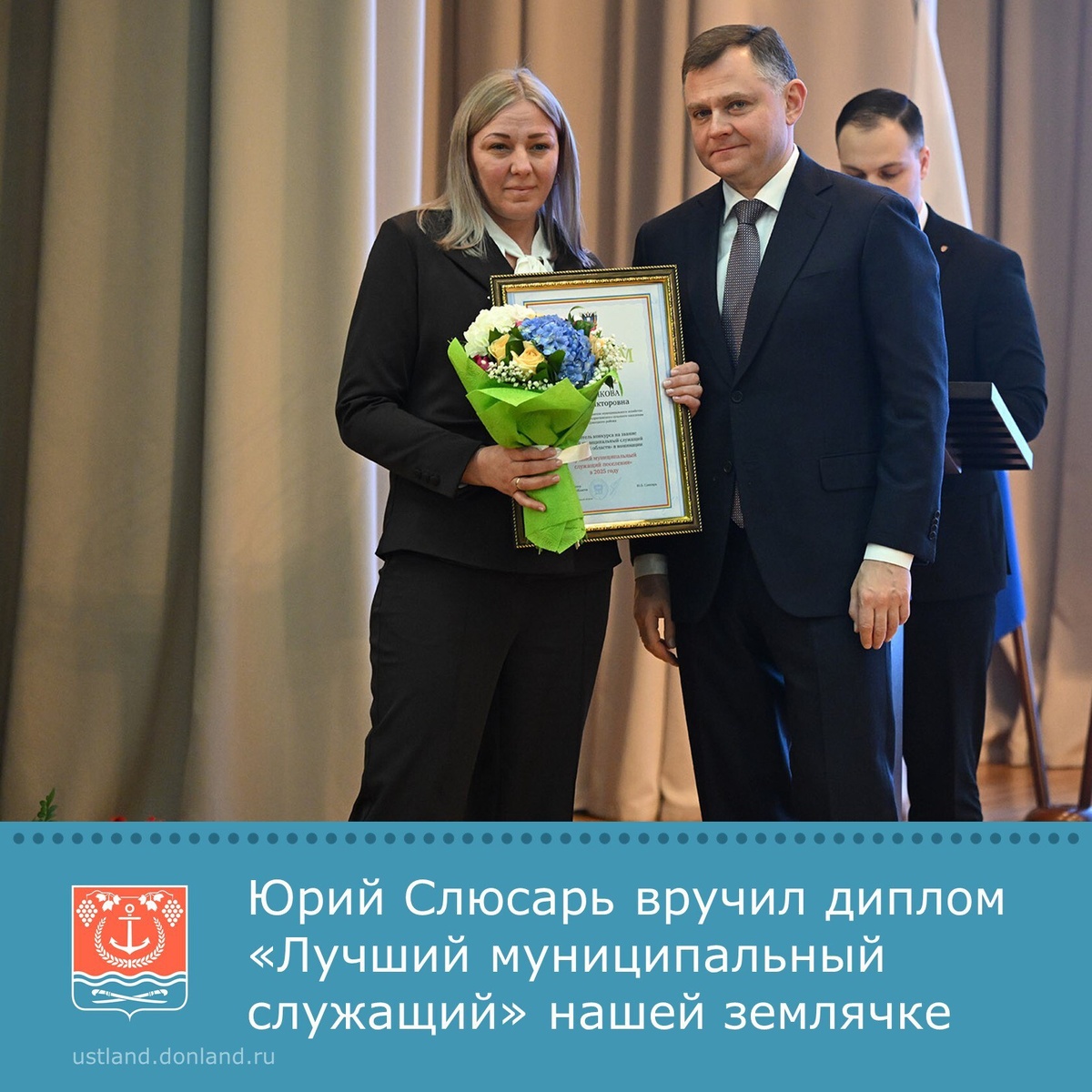 победители ежегодного конкурса «Лучший муниципальный служащий в Ростовской области», направленного на выявление профессионалов, повышение престижа муниципальной службы и поощрение высоких результатов в работе. 👩💼Среди награжденных — наша землячка Юлия Винникова, начальник сектора Администрации Верхнекундрюченского сельского поселения, чей труд отмечен на региональном уровне. 👨💼Диплом победителя Юлии вручил Губернатор Ростовской области Юрий Слюсарь. 🎉Поздравляем Юлию и желаем ей успешного и продуктивного труда, а также быть полезной для общества и нашего района. #УстьДонецкийрайон #АдминистрацияУстьДонецкогорайона #ЮрийСлюсарь