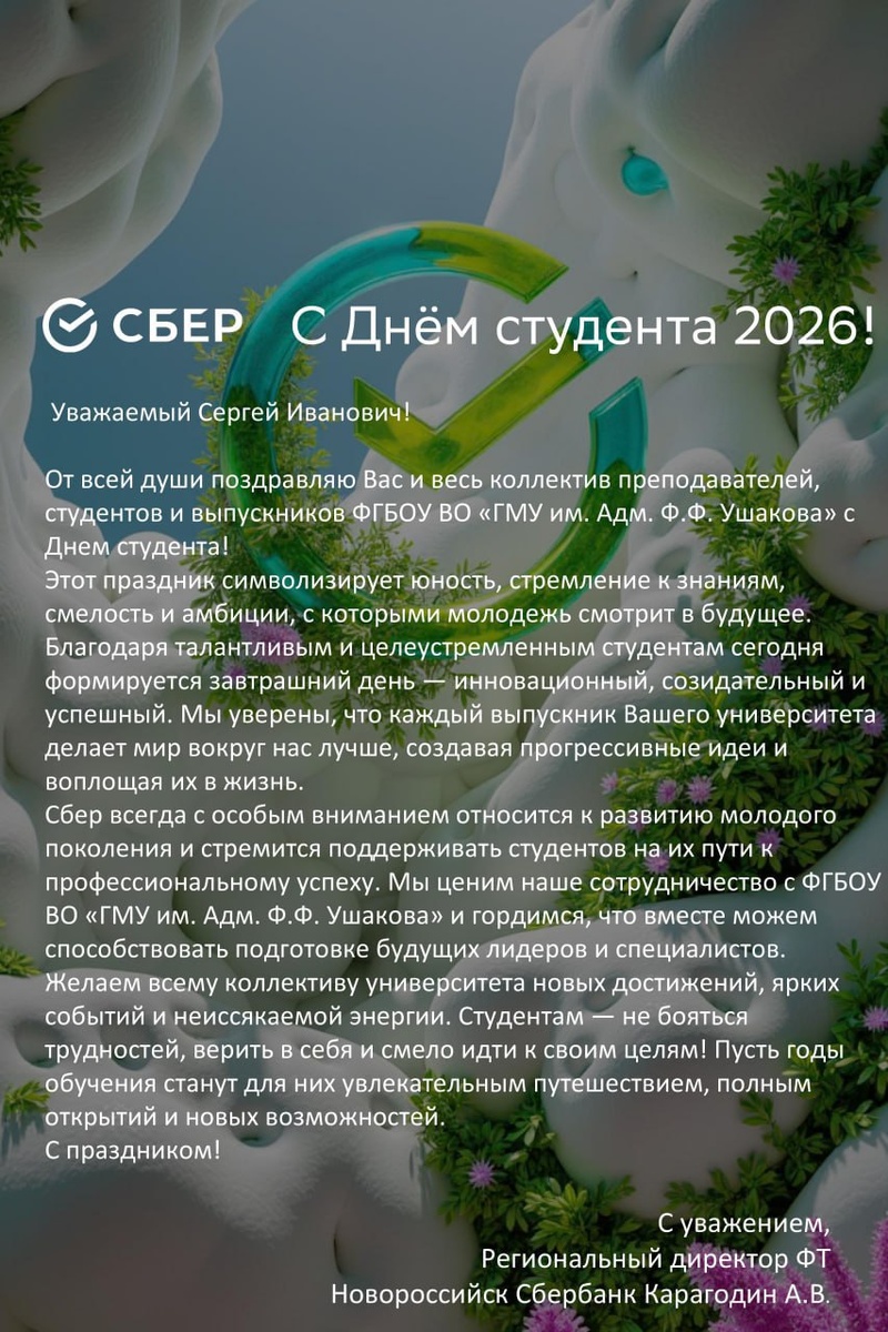 С Днём студента всех поздравляет Сбербанк