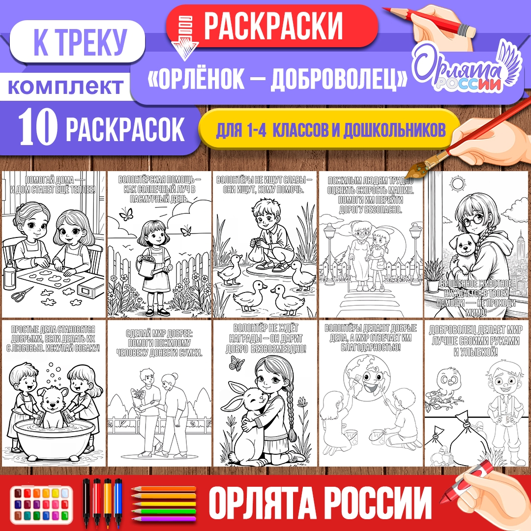 Раскраски «Орлята России». Трек «Орлёнок-Доброволец» (комплект)
