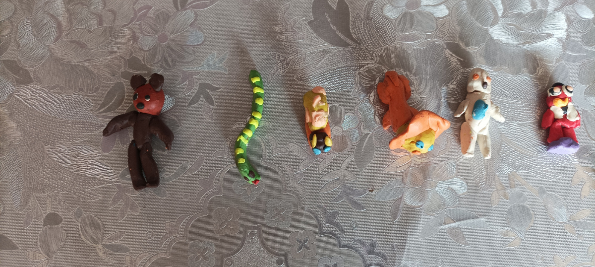 -Мам, я слепила зверей - лев, пингвин, улитка, гусеница, медведь и... папа! 🤦♀️😂 Всё красиво, аккуратно и талантливо). Папа, как полагается - в рабочей куртке и жилетке, только почему-то с выпученными глазами 😂😂😂. Посмеялись, восхитились, похвалили. Согласитесь, слепить столько много и так качественно за полчаса урока - это талант. Дим Димыч хорошо, если парочку слепит за это время. И качество будет отставать.