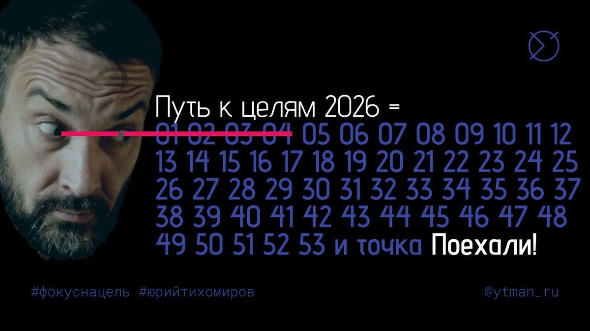 Уже 4 из 53. Вы в ритме или уже в операционной эстафете? Коллеги, пятница, 23 января: уже пролетели 4 недели нового года. 4 из 53 — это 7,5% от 2026 года. Следите за этим ритмом? Наблюдаю вокруг ситуацию, сверяйтесь, откликается ли у вас: · Начинаешь январь с планов и энергии, вроде всё ясно — что делать и как · Цели как-то обсудили, визуализировали в голове · Рабочий ритм после праздников сняли с паузы и новые задачи посыпались · И так вышло, что проработать цели, сделать декомпозицию по месяцам и дорожную карту — снова отложили. Вошли в состояние: «разберёмся по ходу» - как обычно · А тут раз — и месяц на исходе. Знакомое чувство, когда энергия старта растворяется в текущих задачах? Дальше будет хлеще: не сформулированные цели рискуют полностью потонуть в операционке. Фокус сместится … Давайте вместе прикинем, из чего на самом деле состоит наш год: · В 2026 году 53 недели. · Сразу вычёркиваю майские (–2 недели). · Предновогодняя суета и режим «главное доделать» — ещё –3 н