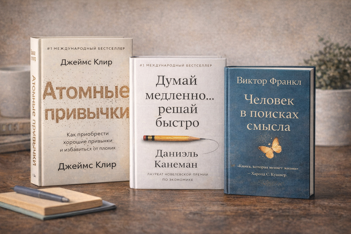 Иногда мотивация нужна не для рывка. Не для «новой жизни с понедельника». А просто чтобы снова почувствовать опору под ногами и понять, куда идти дальше — спокойно, без насилия над собой. Есть книги, которые не кричат «ты можешь всё», но после которых почему-то становится легче собраться. Ниже — три именно такие. Разные по стилю, но каждая по-своему попадает в нужный момент. Атомные привычки — Джеймс Клир Эта книга стала популярной не случайно. Она попала ровно в ту точку, где многие устали от героических усилий и разочаровались в силе воли. Клир честно говорит: проблема не в том, что вы ленивы или слабы. Проблема в том, что вы пытаетесь менять жизнь через напряжение, а не через систему. Книга очень подробно и понятно объясняет: Самое ценное — сдвиг фокуса. Не «кем я должен стать», а что я делаю каждый день. После этой книги не хочется начинать всё сначала. Хочется просто немного упростить жизнь и перестать требовать от себя невозможного. Думай медленно… решай быстро — Даниэль Канеман