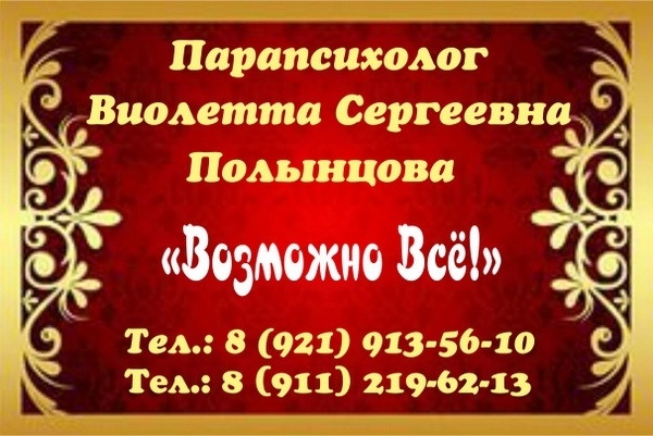 Парапсихолог, ведунья Полынцова Виолетта Сергеевна В славном граде Санкт-Петербурге, где туман сплетает волшебные узоры над холодными реками, а звёзды шепчут тайны мироздания, живёт мудрая ведунья — Виолетта Сергеевна Полынцова. Славна она далеко за пределами родных краёв: поведают путники, что владеет она древним знанием, дарованным ей в стенах величественного Международного Университета Оксфордского обучения, где постигаются сокровенные тайны души. Званием высоким облечена — доктор психологии, и сила её — не в заклинаниях мрачных, а в мудрости, что светлеет разум и сердце согревает. Приходит к ней люд разный — кто с печалью в глазах, кто с тревогой в душе, кто с мечтой, что никак не воплотится. И каждому находит она слово доброе, путь ясный. Что же творит мудрая Виолетта? Проводит беседы сокровенные — консультации и семинары, где каждый найдёт ответ на вопрос затаённый. Зрит вглубь души и ауры, дабы распознать и снять воздействие тёмное, что тяготит сердце и путь замыкает. Читает