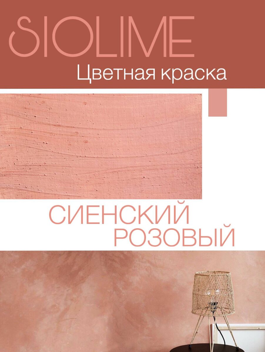 Сиенский розовый от SioLime – это теплый, приглушенный оттенок с земляными нотками. Вот с какими цветами он хорошо сочетается и где его можно использовать: Сочетания цветов: Нейтральные оттенки: Серый: Светло-серый, графитовый или "теплый серый" создадут элегантный и сбалансированный вид. Белый: От кремового до слоновой кости, белый подчеркнет теплоту сиенского розового и добавит свежести. Бежевый и коричневый: Естественная гармония, особенно с древесными текстурами. Зеленые оттенки: Оливковый и шалфейный: Создают спокойную, природную атмосферу. Темно-зеленый (например, изумрудный): Для более выразительного, контрастного эффекта. Синие оттенки: Приглушенный синий, серо-голубой: Обеспечит мягкий контраст и добавит прохлады. Желтые оттенки: Горчичный или приглушенный желтый: Создадут теплую, уютную комбинацию. Дополнительные цвета: Медь и золото: Подчеркнут теплоту и добавят роскоши. Использование в интерьере: Спальня: Создание расслабляющей атмосферы, подходит для стен, текстиля (постел