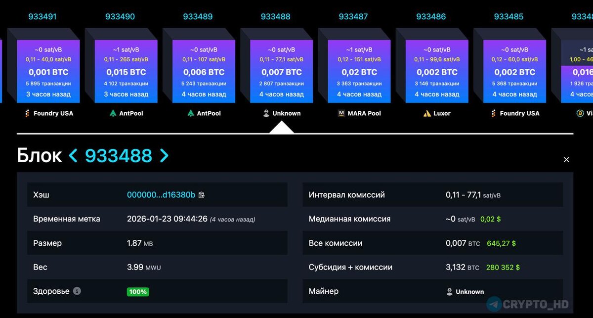 🤑 Очередной майнер-одиночка добыл блок Биткоина и заработал 3,13 BTC ($280k