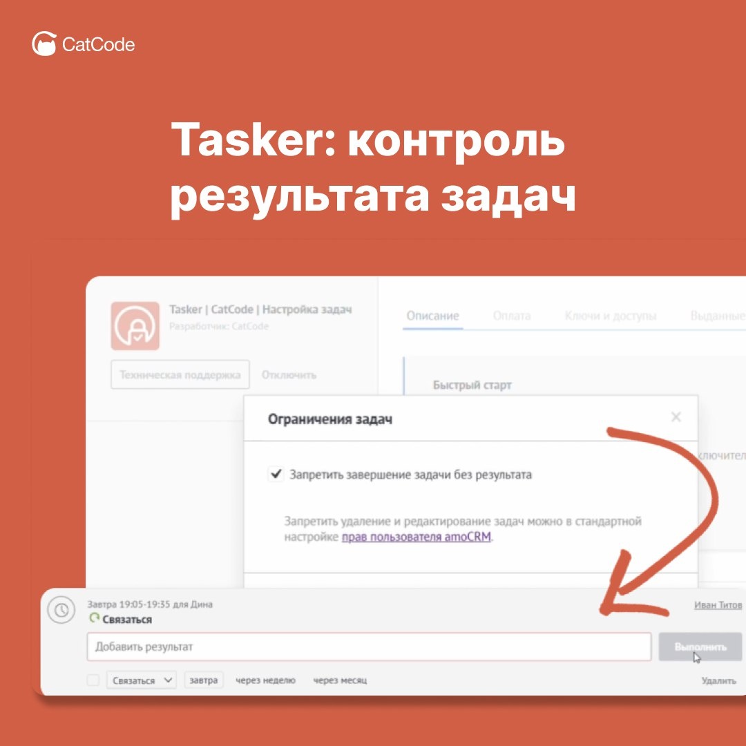Tasker не позволит закрыть задачу без заполненного результата. ⚡ Обязательное описание результата ⚡ Защита от ошибок и пропусков ⚡ Гибкие настройки ⚡ Улучшение коммуникации и аналитики ✉ Если остались вопросы — пишите, будем рады помочь! #tasker@catcode_news