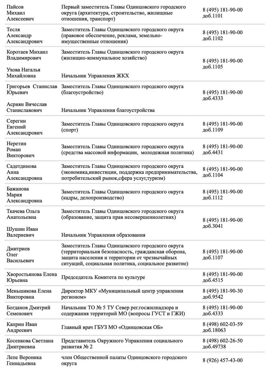 Звенигород, ул. Московская, 11, Культурный центр имени Любови Орловой. Участие в мероприятии примут заместители главы, представители МКУ «МЦУР», Одинцовской областной больницы, министерства чистоты Московской области. Запись на личный приём ведётся в рабочие дни с 09.00 до 18.00 (понедельник-четверг), с 09.00 до 15.30 (пятница), обеденный перерыв: 13.00-13.45. В случае невозможности дозвониться по указанным телефонам - звонить по тел. 8-495-181-90-10, доб. 7951 или оставить заявку на обратный звонок по ссылке. ☑️@Администрация Одинцовского округа