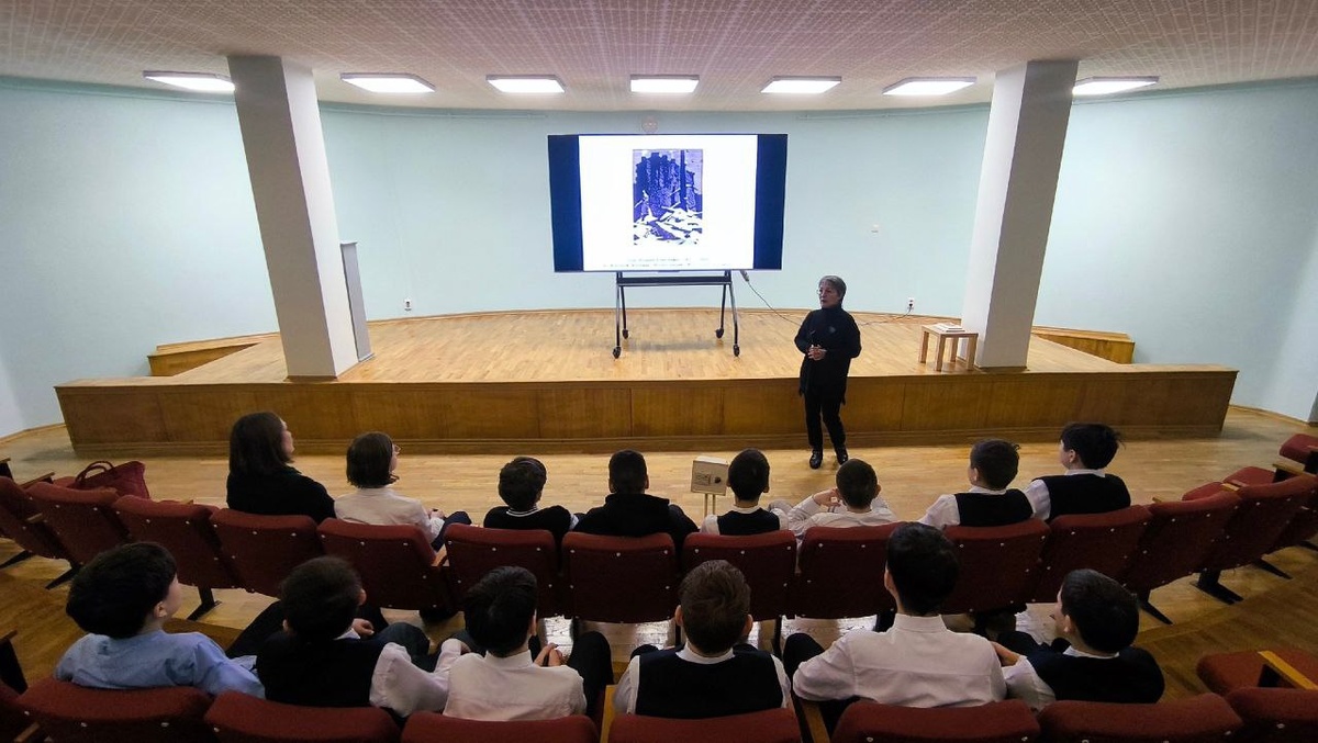 Встречу с учениками 5 класса СОШ №39 провела хранитель графики музея Валентина Боброва. Она подробно рассказала о событиях тех страшных лет, сделав акцент не только на исторических фактах, но и на отдельных человеческих судьбах через произведения художников из собрания ЧГХМ. Ребята узнали о невероятной стойкости и мужестве людей, которые несмотря на голод, холод и бомбардировки, продолжали бороться за свободу и жизнь. Ключевыми фрагментами лекции стали история легендарной «Дороги жизни» через Ладожское озеро и судьба дневника 11-летней Тани Савичевой, ставшего символом трагедии и силы духа ленинградцев. 🕯