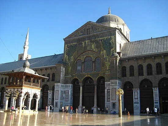 В Большой мечети Дамаска (706-715) правители из династии Омейядов разработали основные архитектурные компоненты современной мечети. Хотя в нем присутствует некоторое римское и византийское влияние в архитектурном стиле, Омейяды ввели совершенно новый архитектурный стиль, а также декоративные элементы. Разработанная ими мечеть по своей структуре соответствует образцу мечети Пророка в Медине, однако они добавили ряд функциональных элементов, таких как минареты, михраб, узорчатая решетка (максура) и купол. Михраб был впервые введен ими в центре стены, которая указывает направление на Каабу. Они добавили четыре минарета для призыва к молитве (азан), которые, согласно мнению некоторых авторов, восходят к световым башням фараона или Церкви Иоанна Крестителя. Подковообразные и многослойные арки также были впервые использованы именно в мечети Омейядов. Эти элементы позже были переданы остальному мусульманскому миру. Купол над над центральным нефом перед михрабом впервые появился в мечети Омейядов и постепенно стал главной особенностью большинства мечетей. Они также являются основателями каллиграфии (куфи), стеклянной мозаики, растительных и геометрических узоров.