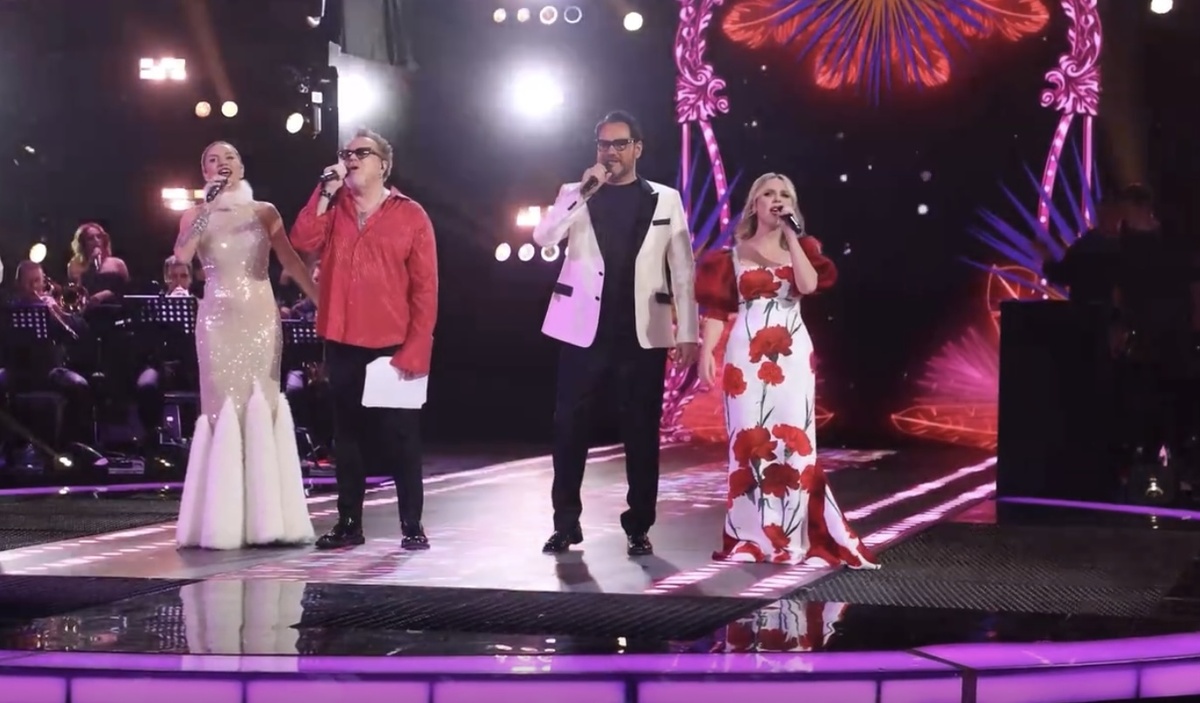 Начали красиво! На сцене Пелагея, оперный певец Ильдар Абдразаков, Владимир Пресняков и Анна Асти спели песню «этот Голос» традиционно на двух языках, на этот раз итальянском и русском. Сразу же задали тон всему: новому сезону, новому составу наставников, атмосфере на шоу. Пелагея как всегда красотка. Ильдар тоже вокально под стать, а вот Асти и Преснякова в их партиях было практически не слышно.