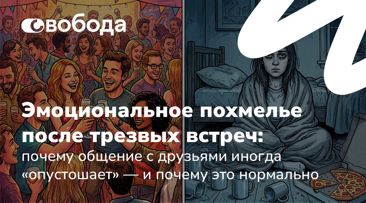 «Эмоциональное похмелье» — разговорное название состояния, когда после социального события наступает заметный спад: усталость, снижение настроения, тревожность, самокритика, желание спрятаться от людей и звуков. Это не медицинский диагноз, а понятная метафора: как будто «переборщили» не с алкоголем, а с впечатлениями, разговорами, эмоциями и вниманием.