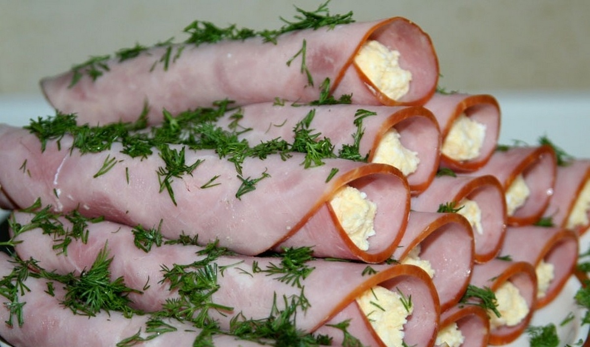 Сыр тоже натираем — чем мельче, тем нежнее будет начинка. Чеснок пропускаем через пресс или очень мелко нарезаем (если любите аромат поярче — добавляйте смело). Соединяем яйца, сыр и чеснок в одной миске, добавляем майонез, соль и перец. Всё тщательно перемешиваем до однородной, пластичной массы. Важно: начинка не должна быть слишком жидкой, иначе рулетики будут плохо держать форму. Ломтики ветчины аккуратно раскладываем на доске. Если они