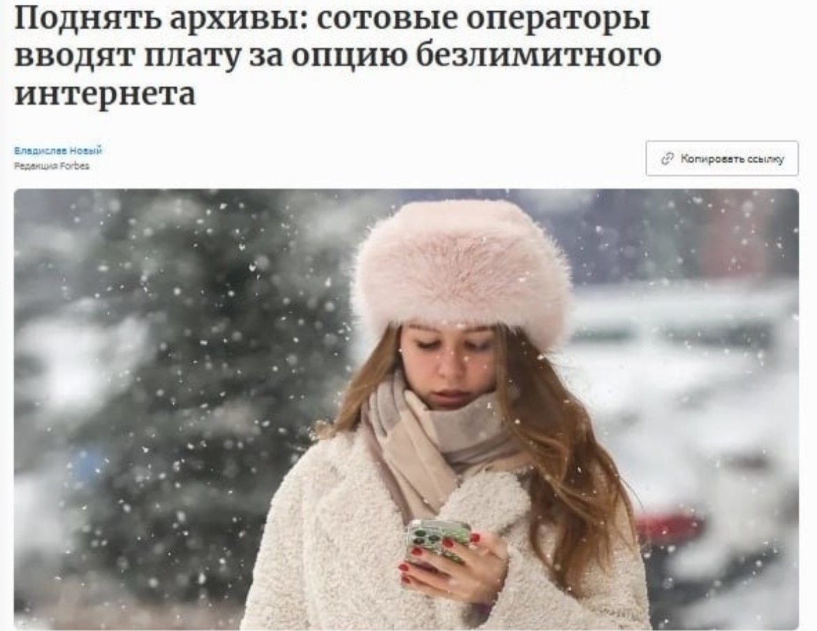 Безлимитный интернет теперь считается дополнительной услугой, а не частью тарифа. Как сообщает Forbes, с 1 января Мегафон начал списывать 25–99 рублей в месяц для части абонентов, Билайн — 4,5 рубля в сутки. При этом отказ от оплаты означает переход на ограниченный пакет трафика без возможности вернуть безлимит. 👉 Подписаться на канал