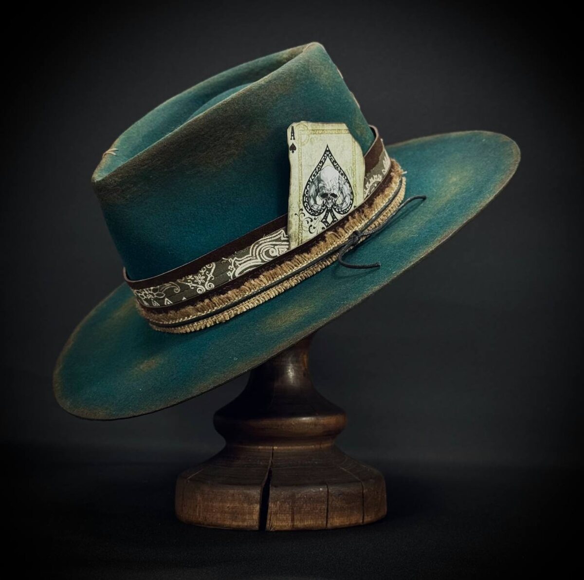 Друзья, не так давно мы получили очень красивый материал — фетр цвета «морская волна». И, конечно, сразу принялись создавать из него новые модели. Работая над этой шляпой, мы поймали ассоциацию с винтажным сочетанием цветов, как на обложке старой книги. Вот что мы сделали в этой модели: обожгли фетр, и цвет приобрёл сложную глубину — сине-зелёный с коричневой патиной. Ленту собрали из полос натуральной замши и хлопковой банданы — это классическое сочетание старой кожи и выгоревшего текстиля. Дополнили её холщовой тканью и вощёным шнуром. На тулье сделали несколько ручных стежков — как следы реставрации старой, но очень редкой вещи. ————————— Размерный ряд: от 52 до 64, включая промежуточные размеры (52.5, 53.5 и т.д.) Цена: 13 200 ₽ Бесплатная доставка по РФ Все шляпы изготавливаются индивидуально под заказ в нашей мастерской. Заказать или просто спросить:) #fedora #jack #синезелёный #7см