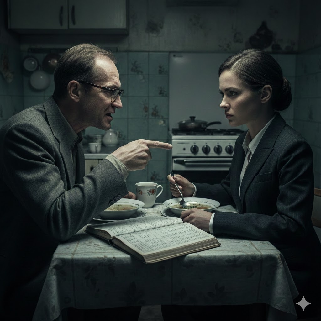 — Скажите мне, аудитор с сорокалетним стажем: какова рыночная стоимость сломанной психики? Какой коэффициент дисконтирования мы применим к одиночеству моей матери, которую вы зашугали своими «отчетами»? Сколько стоит один вечер, когда ребенок боится идти на кухню, потому что знает — его там будут судить за ложку сметаны?