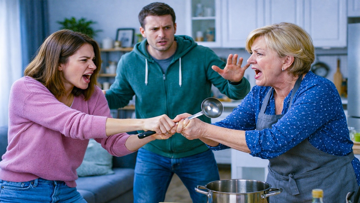 Голоса повысились. Ирина Петровна шагнула вперёд, всё ещё сжимая половник.
