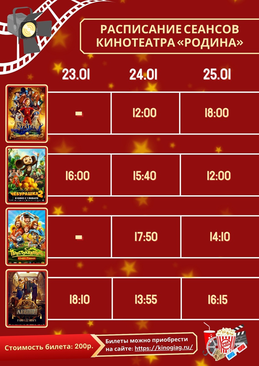 Приглашаем посетить кинотеатр " Родина " в ст. Гиагинской.