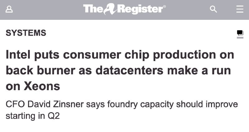 Теперь компания сосредоточит усилия на линейке Xeon, разработанной для серверов, использующих искусственный интеллект. Бюджетные процессоры могут исчезнуть практически полностью. Остаток мощностей Intel будет выделен для средних и высокопроизводительных чипов. Поэтому стоит ожидать нехватки товаров на рынке. Старая стратегия Intel утратила актуальность, так как завышенные цены на комплектующие отпугивают владельцев ПК. В это время спрос на дата-центры неуклонно растет. Доступные сборки ПК становятся частью прошлого. Дополнительные детали можно узнать на The Register. Постмейкер - автоматическое ведение канала 🤖 Анимация | СhatGPT-4 | Помощь с резюме