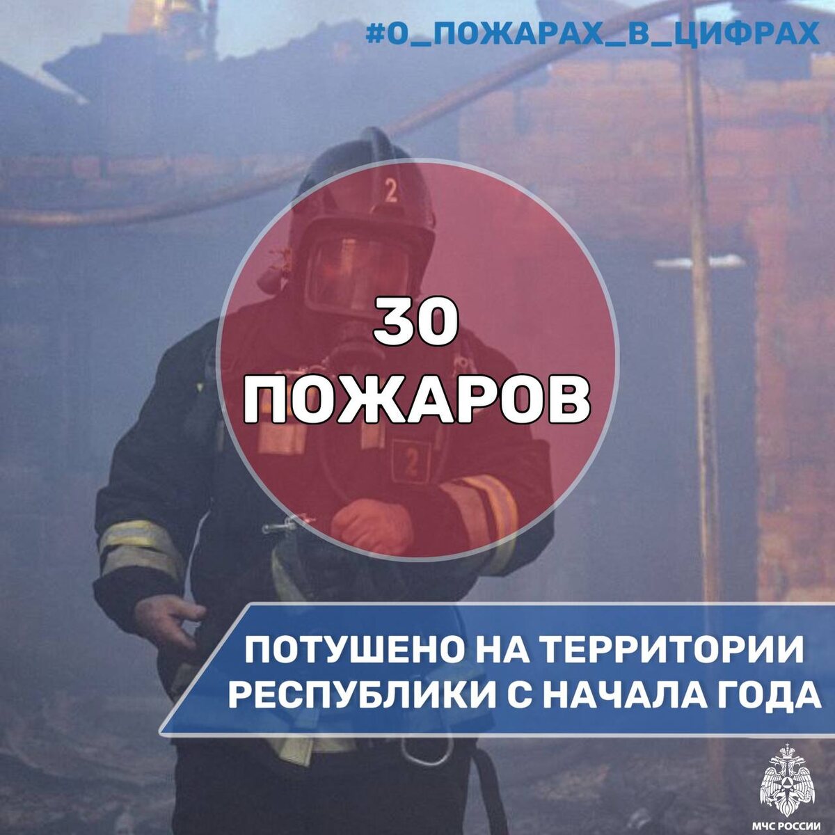 С начала 2026 года на территории Северной Осетии было зарегистрировано 30 пожаров. На пожарах погибших нет. Пожарно-спасательными подразделениями были эвакуированы – 10 человек. Большинство из пожаров произошло в нежилом фонде (15 из 30), из них 1 – горение сухой травы на открытой местности. По причине детской шалости с огнем на территории республики пожаров не зарегистрировано.