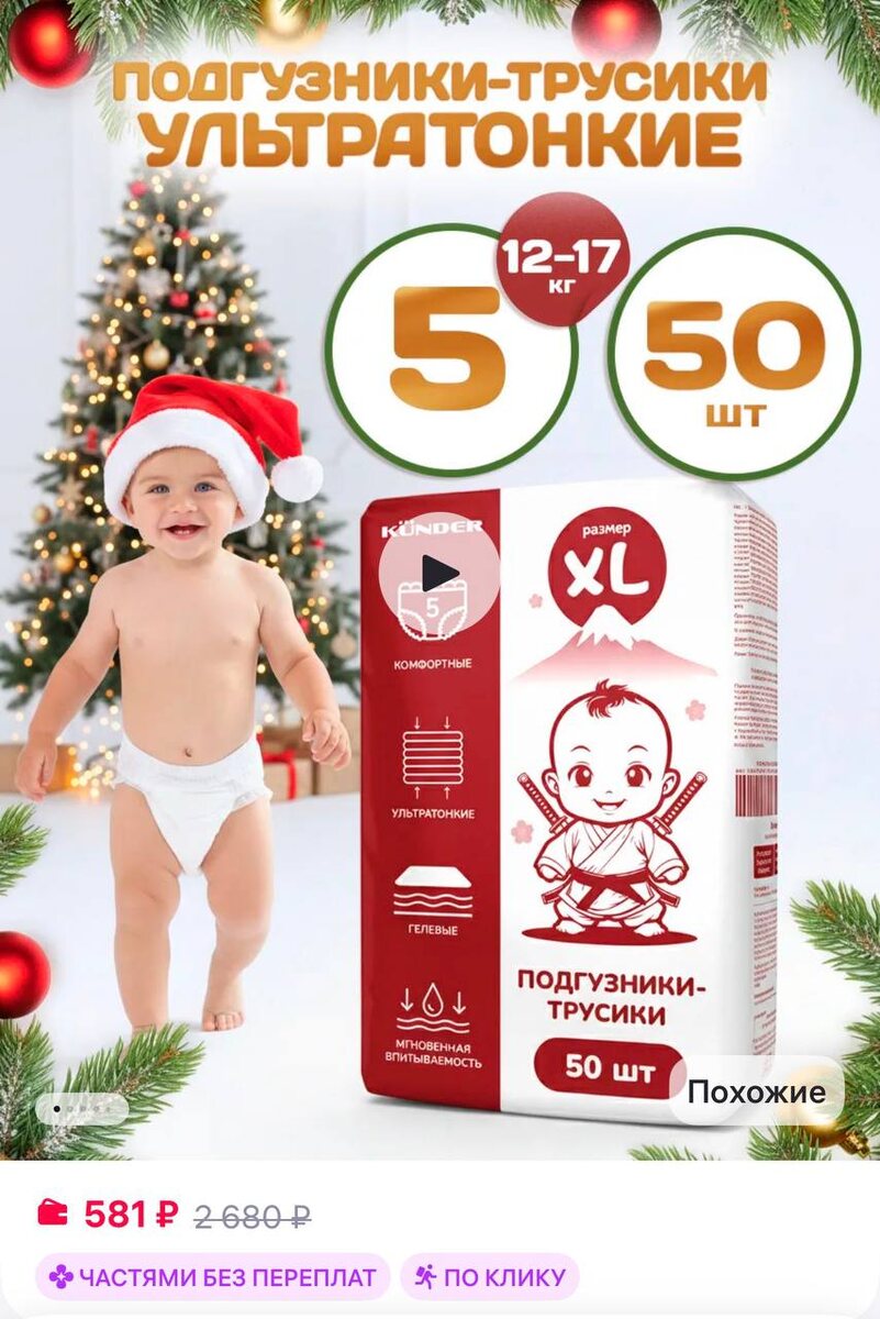 😀😀😀KUNDER XL 12-17кг подгузники трусики 5 размер