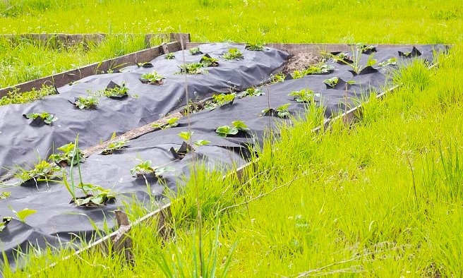 - Агроволокно (спанбонд): Неорганический вариант. Эффективно против сорняков, быстро прогревает почву. Используйте черное для гряд, белое — для клубники.