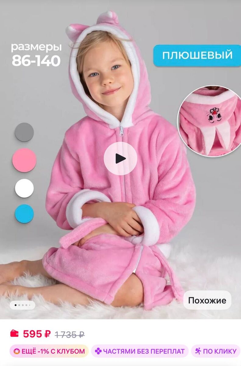 😀😀😀MYBEST Халат домашний детский с капюшоном и поясом на молнии