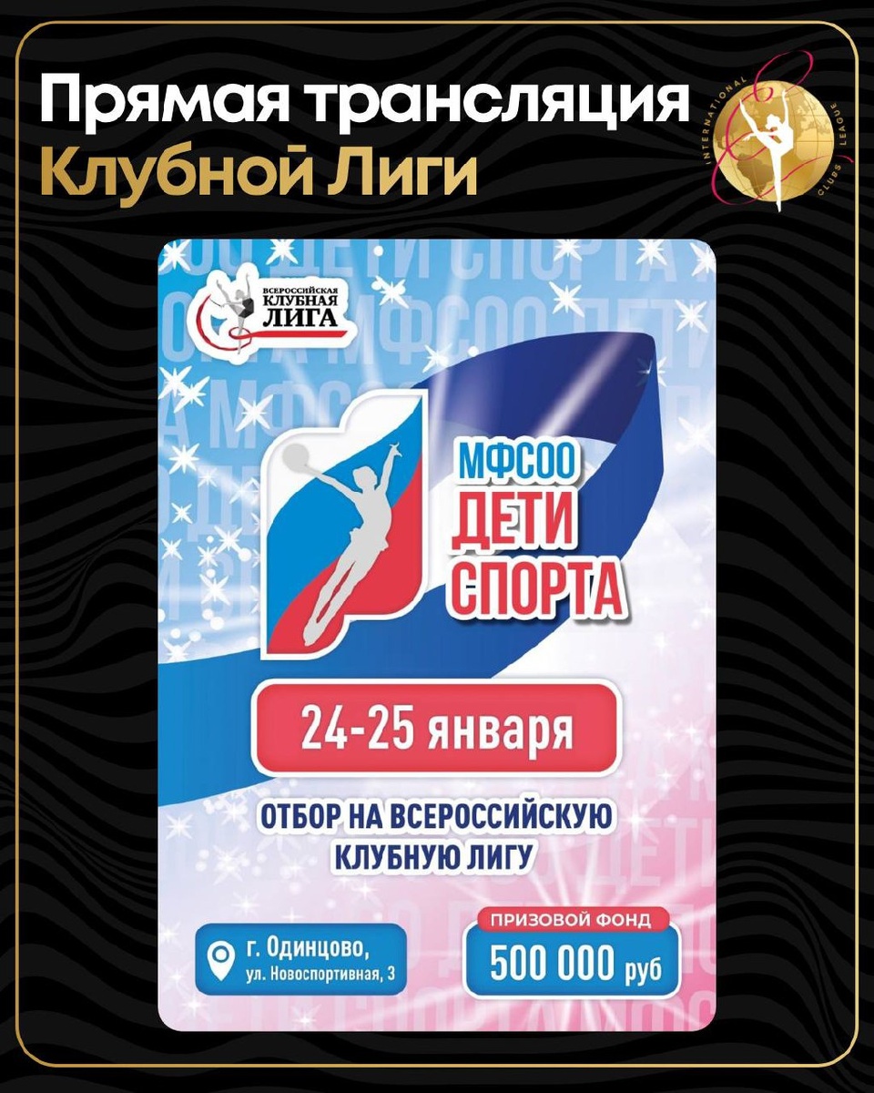 🚀Уже завтра стартуют соревнования Межрегиональной Клубной Лиги «МФСОО Дети Спорта»! 24–25 января в Одинцово пройдёт отборочный этап на Всероссийскую Клубную Лигу, который соберёт более 600 гимнасток из 4 регионов. 🎥Прямая трансляция соревнований будет доступна завтра в нашем Telegram-канале📱 — подключайтесь, чтобы следить за выступлениями и поддержать участниц. ⚡️Турнир станет важным этапом в борьбе за рейтинговые очки Клубной Лиги и подготовку к следующим ключевым стартам сезона. 📍Место проведения: г. Одинцово, ул. Новоспортивная, 3 🌟Главный судья — Ольга Сергеевна Капранова ✅Главный секретарь — Захожая Екатерина Валерьевна 👀Следите за новостями и включайтесь в трансляцию уже завтра! The competitions of the Interregional Club League «MFSOO Children of Sports» will start tomorrow! On January 24-25, Odintsovo will host the qualifying stage for the All-Russian Club League, which will bring together more than 600 gymnasts from 4 regions. 🎥Live broadcast of the competition w