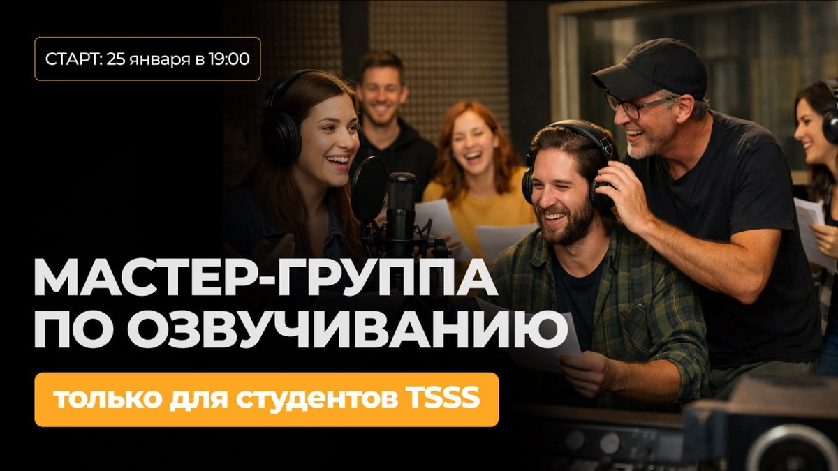 ‼️ТОЛЬКО ДЛЯ СТУДЕНТОВ TSSS Это блок дополнительных практических занятий с экспертами школы по самым актуальным модулям программы TSSS: ▪️создание акустической обстановки, ▪️секреты записи аудиокниг, ▪️работа над саунд-дизайном. А также ▪️формирование личного бренда диктора, ▪️составление портфолио и ваши первые шаги на рынке озвучки, ▪️неочевидные способы поиска и получения заказов. Вебинары мастер-группы позволят подробнее раскрыть темы, связанные с работой с голосом, разбором конкретных ситуаций, практическими кейсами. В общем, всем тем, о чем вы хотели спросить во время учебы, но почему-то не решились 😌. Всего8️⃣живых тематических онлайн-встреч, первая из которых состоится уже в это воскресенье 25 января в 19:00. Узнать подробнее ↖️ И тема первого мастер-класса — «Голосовой стиль: как найти собственную манеру звучания 😤». Поговорим о самом важном — вашем голосе. Разберемся с его характеристиками: высотой, силой, тембром. Поймем, что конкретно составляет его индивидуальность.