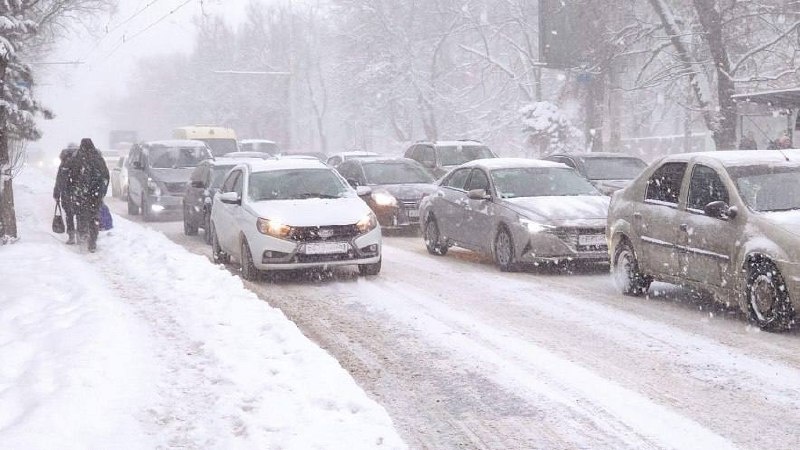 ⚠️ Пробки в Ростове уже 6 баллов. На дорогах заторы, даже на Западном мосту. К вечеру ожидаем 10 баллов, так как снег не прекратится