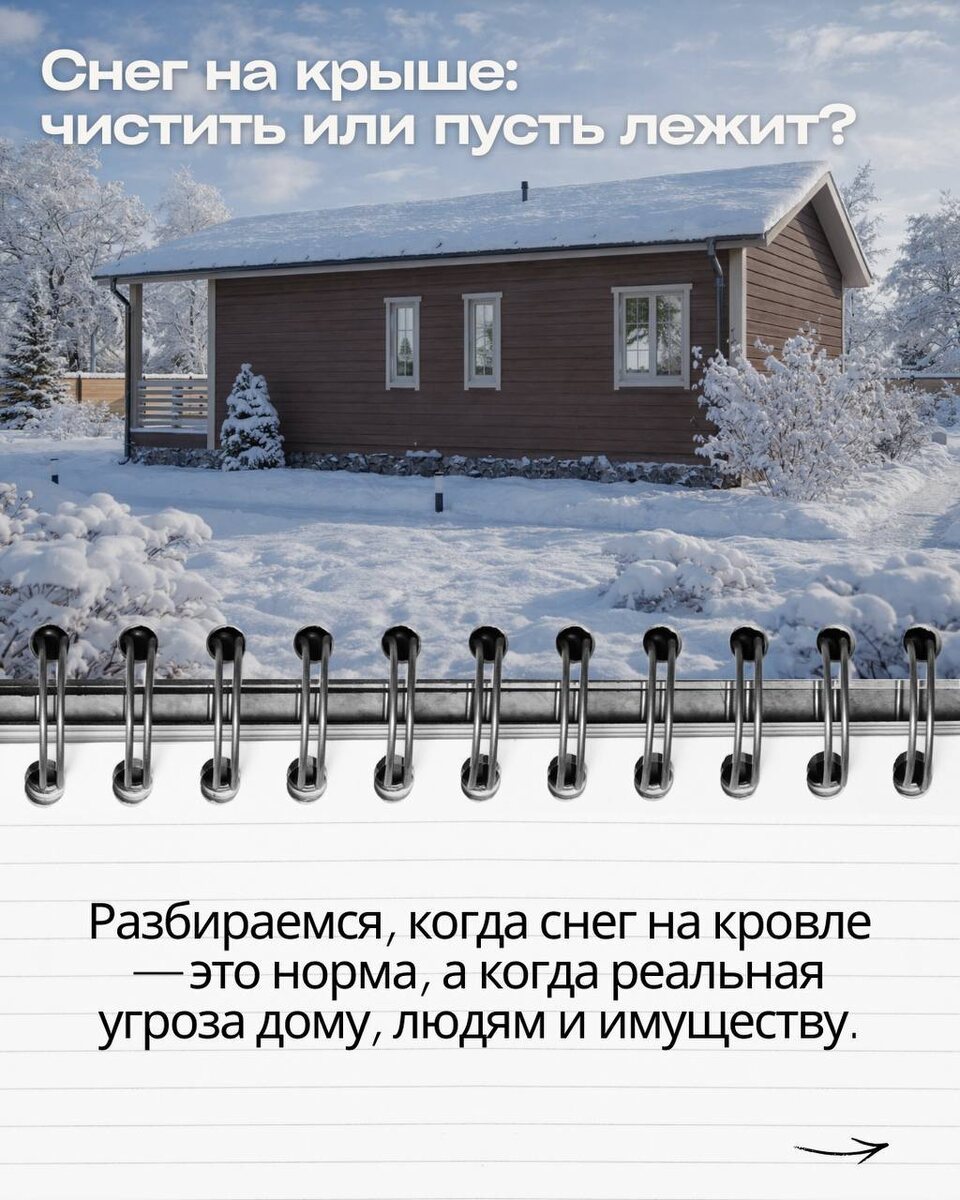 : 💙расчет снеговой нагрузки; 💙форма крыши; 💙выбор кровельного материала; 💙системы снегозадержания. Хорошо спроектированный дом не требует постоянной борьбы со снегом и остается безопасным даже в суровую зиму. Если вы планируете строить дом и хотите крышу без проблем зимой — заполняйте заявку и мы подскажем оптимальное решение именно для вашего дома и региона.