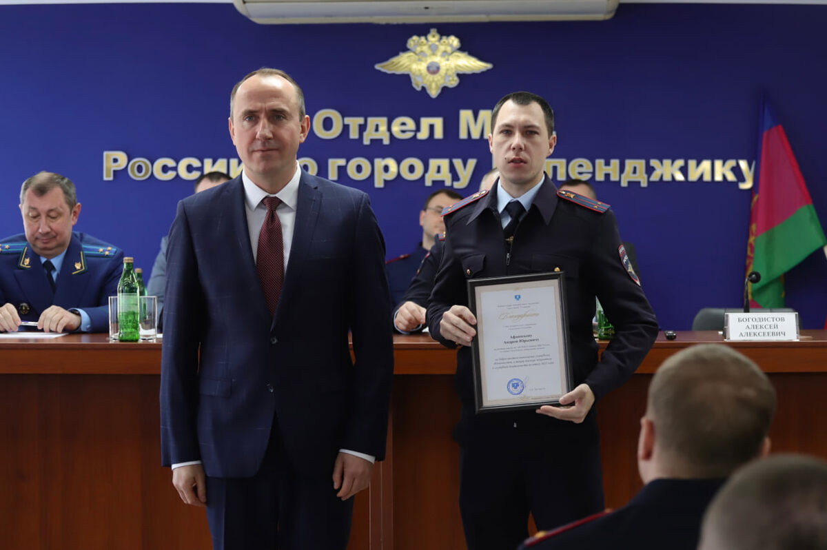 В Отделе МВД России по городу-курорту Геленджик подвели итоги работы за прошедший год и отметили вклад сотрудников в безопасность горожан. В 2025 году обеспечена охрана правопорядка при проведении 447 мероприятий с участием граждан. Охрану обеспечивали 1653 сотрудников полиции. За год отмечено снижение количества зарегистрированных преступлений, включая мошенничеств, совершаемые с использованием сети интернет, мобильной связи. Благодарственными письмами глава курорта Алексей Богодистов наградил сотрудников полиции, которые своим профессионализмом и ответственностью обеспечивали порядок и спокойствие на улицах, проявили себя с лучшей стороны в повседневной службе. Их получили: - майор полиции Виталий Викторович Букреев, старший участковый; - капитан внутренней службы Татьяна Васильевна Гутова; - старший лейтенант полиции Анастасия Игоревна Павленко, следователь; - лейтенант полиции Евгений Ваганович Фиданян, участковый; - лейтенант полиции Андрей Юрьевич Афанасьев.
