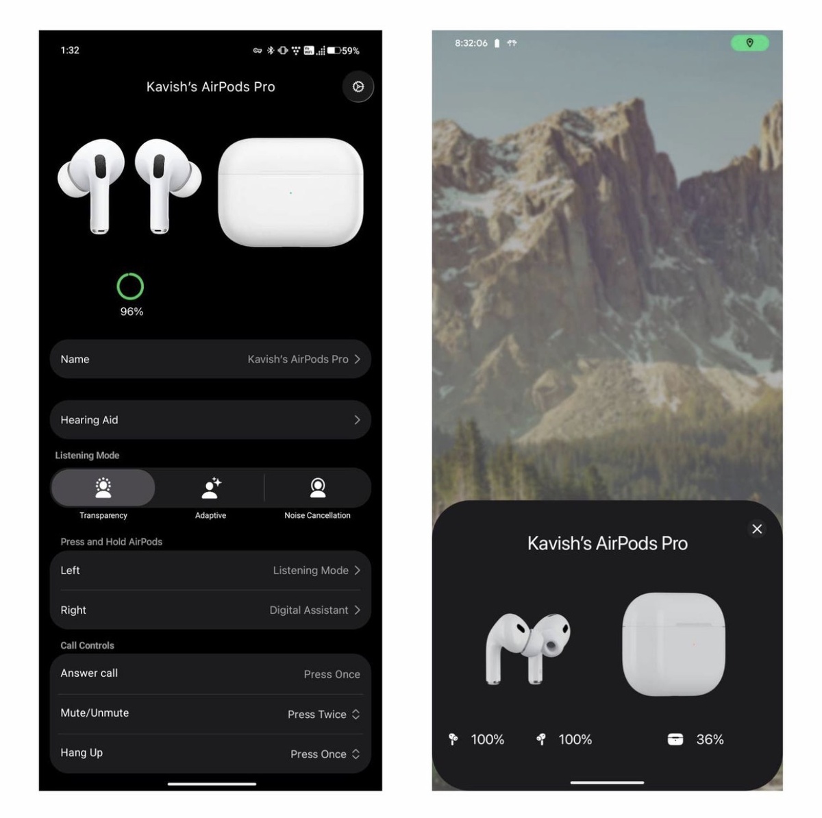 ✅ точный процент заряда наушников и кейса