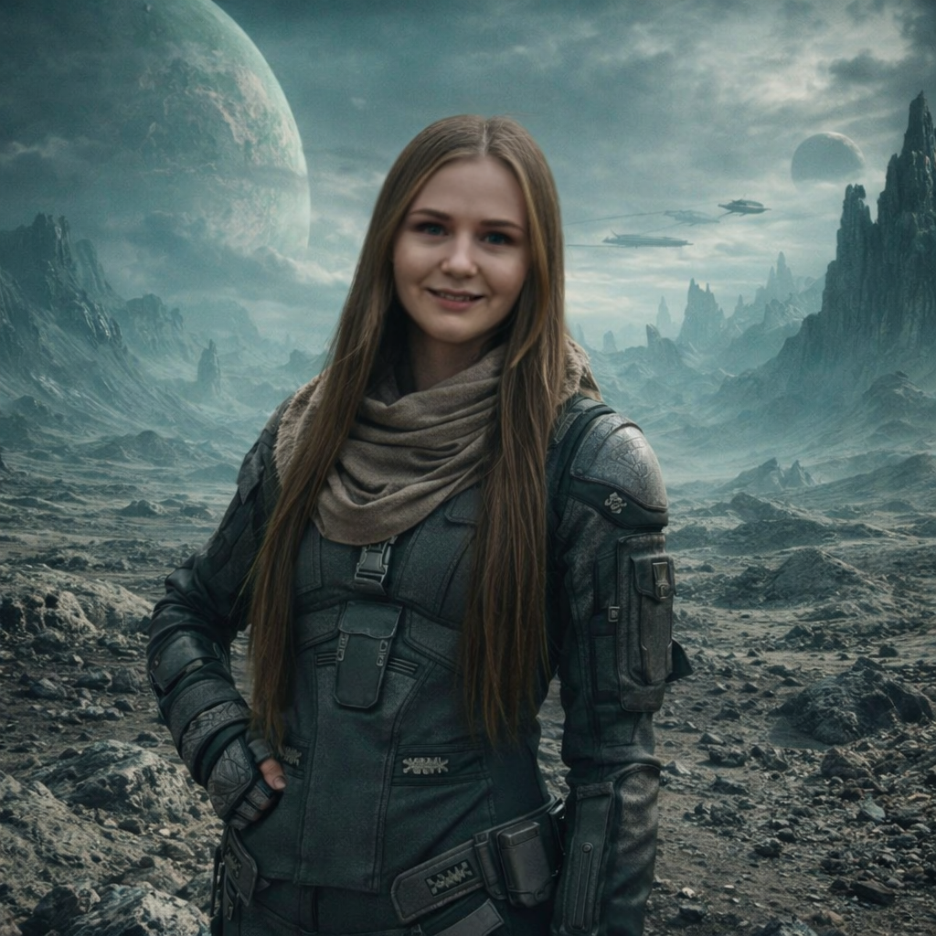 Катя стояла на холодной поверхности чужой планеты и старалась не думать о том, как далеко от Земли она находится. Под ногами — серый камень, в небе — темные облака и огромный бледный шар планеты, нависающий, словно немой наблюдатель. Корабль «Прометей» остался позади, но его присутствие всё ещё ощущалось — как последняя нить, связывающая её с домом.