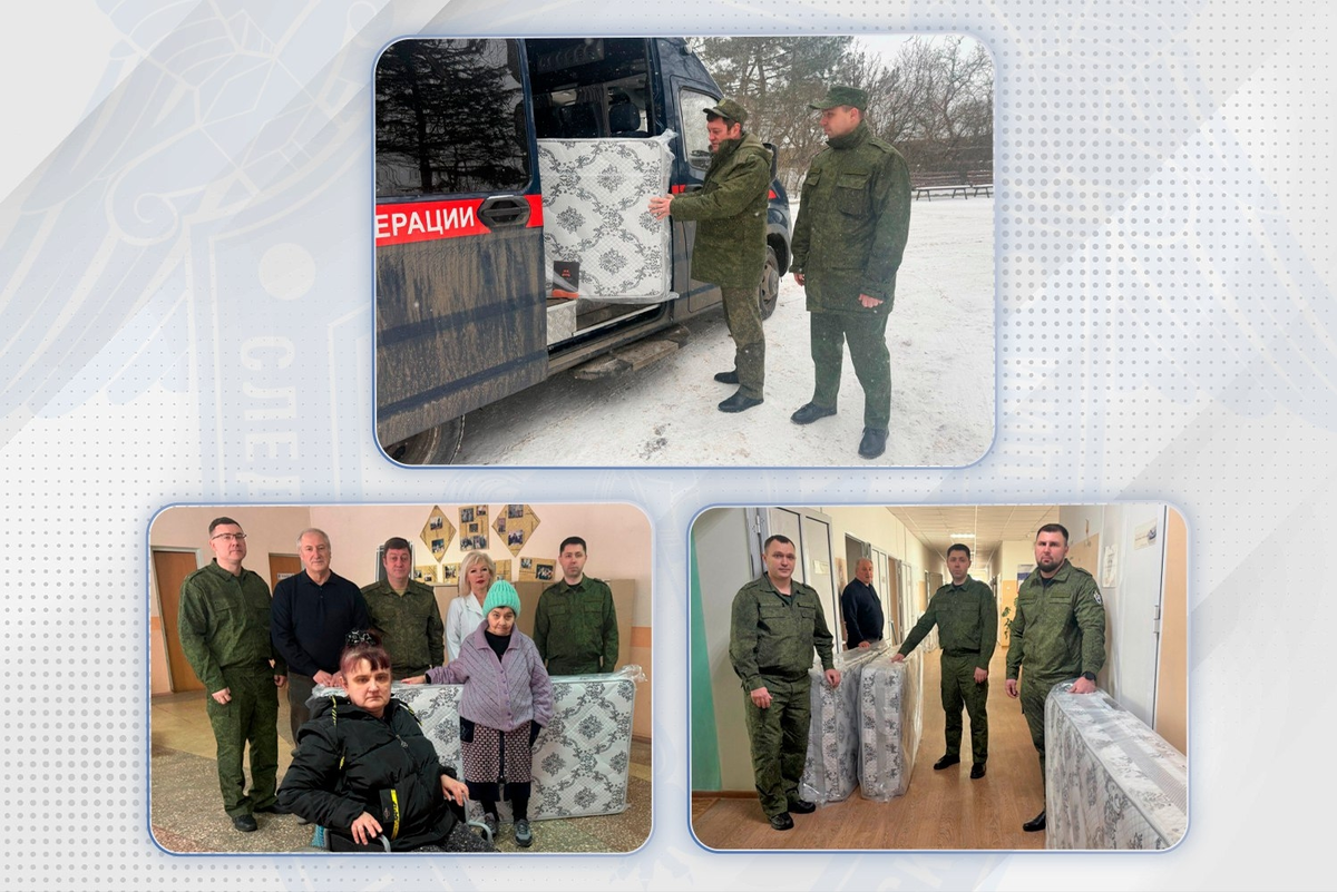 Сотрудники центрального аппарата ведомства, следственного управления СК России по Донецкой Народной Республике совместно с членом Общественного совета при Следственном комитете Р. А. Азимовым приобрели ортопедические матрасы и передали их в ГБУ «Донецкий Дом-интернат для граждан пожилого возраста и инвалидов с гериатрическим отделением». Социальное учреждение было образовано еще в 1973 году. В нем проживают на полном государственном обеспечении более 260 человек, которые нуждаются в поддержке и заботе. На базе дома-интерната, в том числе, проживают и получают социальные услуги участники Великой Отечественной войны. Руководство дома-интерната выразило благодарность за внимание и гуманитарную помощь. «Важно отметить, что подобные акции должны быть регулярными, чтобы действительно приносить пользу. Организация регулярных поставок необходимых товаров и оказание помощи в уходе за пожилыми людьми могут значительно повысить качество их жизни», — отметил руководитель следственного управления С