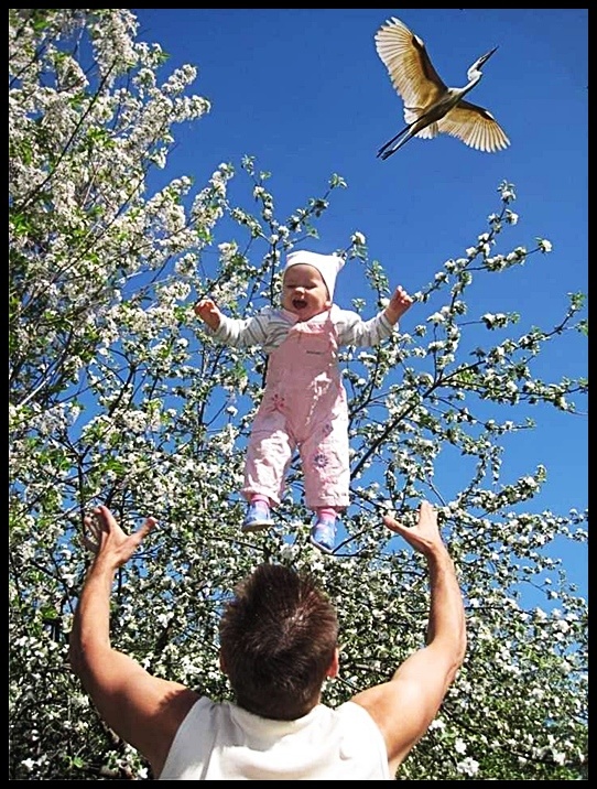 Уф, устал! Нет, совсем люди обленились, детей сами рожать не хотят. Нашли доставщика! А куда деваться? У нас в конторе столько заявок на детей, что даже крыльям отдохнуть некогда. И все с выворотами, то им из пробирки, то с голубыми глазами, то мальчика, то девочку. А один так вообще сиамских близнецов заказал! И вот где ему их взять? Не-не, надо завязывать с такой деятельностью, а то свою семью раз в месяц вижу с такими-то запросами! Ну чо смотришь? Ну-ка дыхни! М-м, странненько... молоком пахнешь. А ну ещё раз дыхни! Молоко! Опять в канцелярии всё перепутали! Вот что за работники, а? Разнарядку дали на младенца! Слушай, а может у тебя батяня пьет или маманя? Нет? А в семье пьющие имеются? Не знаешь...странненько. Так надо подумать...А, поняла! Ты мой будущий клиент! Смотри пацан, не подведи! Тебе сейчас сколько? Годик?! Эх, долгонько ждать. Ну лет через дцать встретимся! Ну бывай, малой, ДО ВСТРЕЧИ! Сорок четыре, сорок пять... Ещё пятнадцать секунд и пожру! А всё ветеринар виноват!