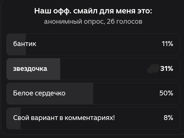 Вообще спросите, зачем я его сделала и провожу итоги, какой же по голосованию мой офф смайл?
