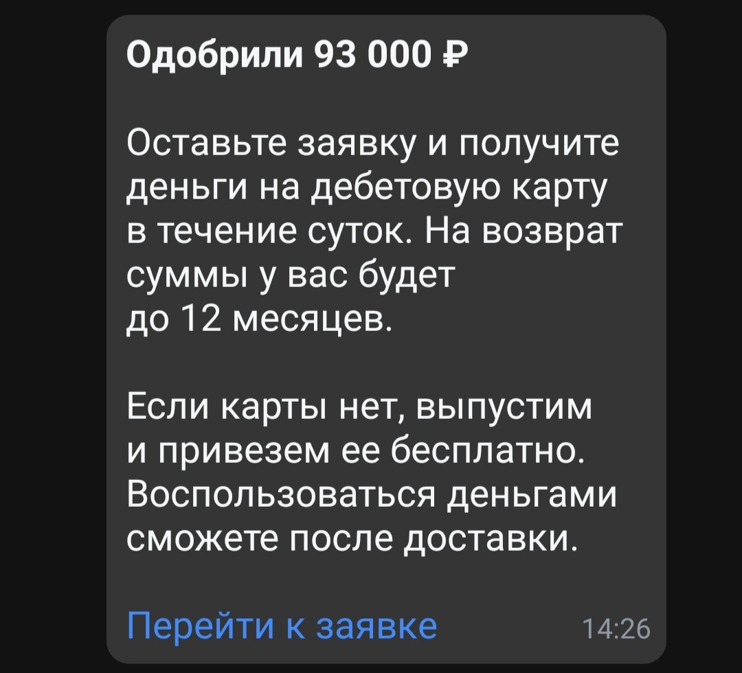 Время от времени у меня в приложении банка выскакивают предложения по кредиту.