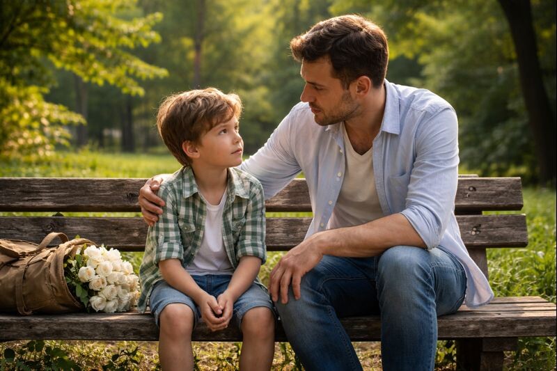 Они сели на лавочку. Михаил заговорил. Он старался опускать некоторые взрослые детали — потому что Вася был ещё ребёнком. И потому что Михаил до ужаса боялся, что семилетний мальчик не сможет понять, как один удар и одно молчание могут убить жизнь.