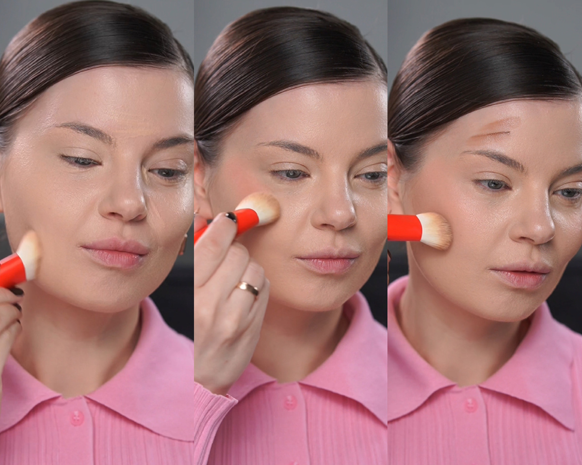 Нанесите тональное средство, затем этой же кистью — консилер на нужные зоны. После этого распределите скульптор и румяна. Все — одним инструментом!