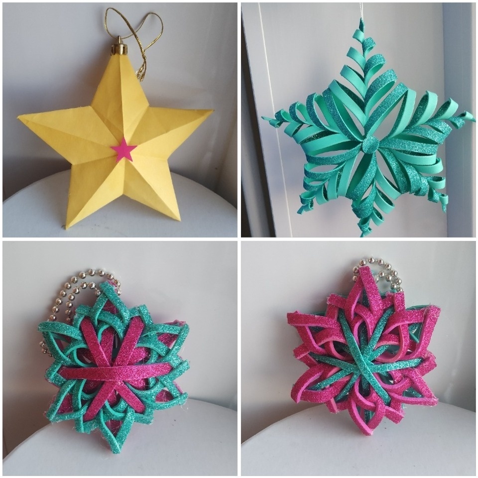 Предлагаю для вдохновения идеи различных новогодних поделок, конфетниц, упаковочек. Все фотографии из нашего личного архива. Некоторые наши поделки, конечно, неидеальны, но уж как получились Начало темы в статье: . Из бумаги и фоамирана Звёздочки из проволоки и ниток и из картона Оригами - звезда, колокольчик и сахарная трость . Шары из первой картинки мы распечатали и склеили по схеме Другие шарики склеиваются из бумажных кружочков Шарики из пенопластовых или старых пластиковых шаров, украсив их макаронами, шариками из фольги, фетром, блёстками или обмотав жгутом Старые ёлочные шарики, украшенные в виде воздушных шаров Игрушки из лампочек Еловая шишка из атласных лент в технике канзаши Игрушки - мороженое на палочке из фетра (или ткани) Ёлочные украшения из фетра, картона и ниток, мягких игрушек . . . . . . Аппликации из камней Аппликации из фетра, бумажных комочков Готовые деревянные объемные аппликации Аппликации пластилином , можно добавить пайетки или полубусины . Схемы конфетн