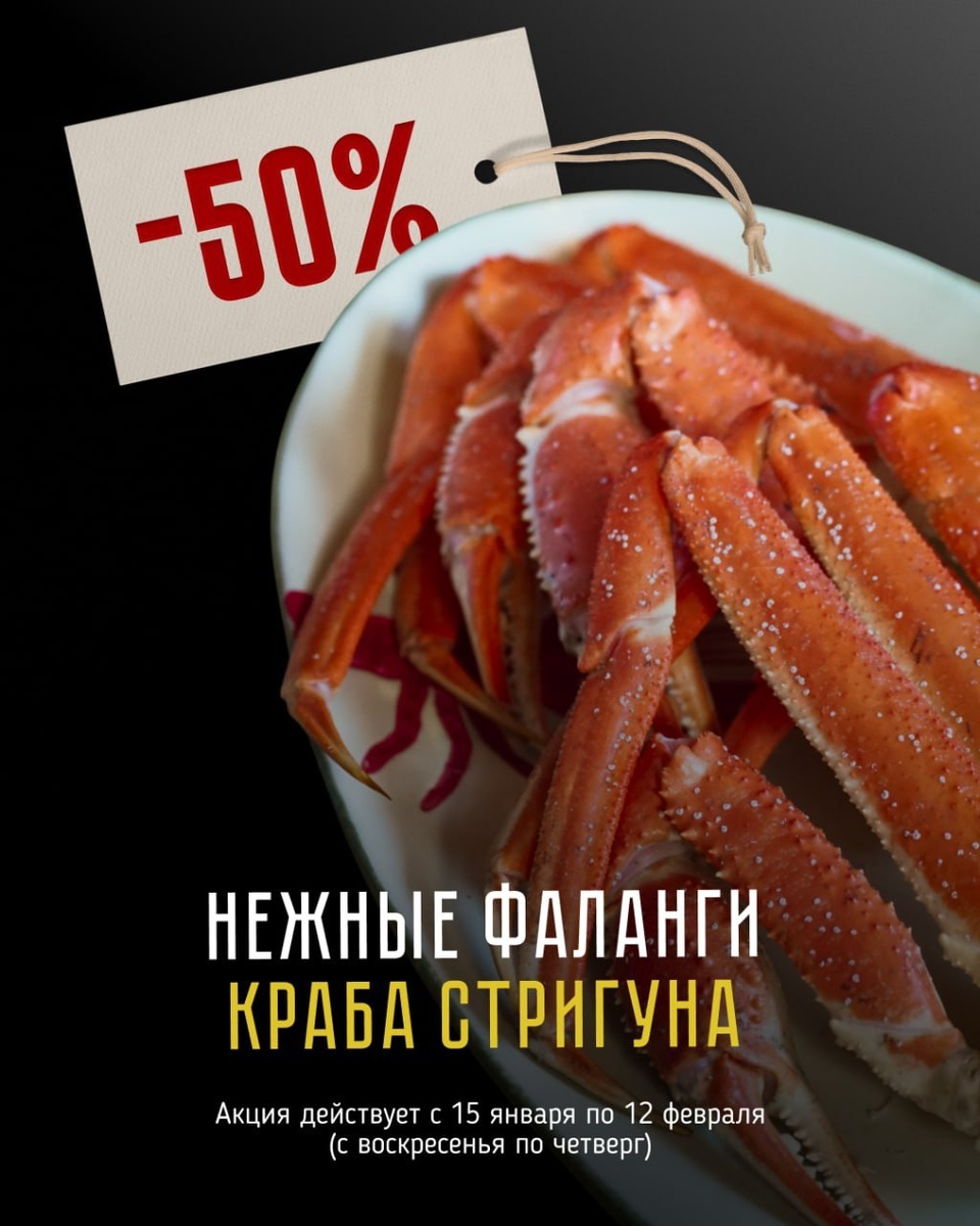 🥘 -50% на фаланги краба стригуна — акция в ресторане «Клешни и Хвосты