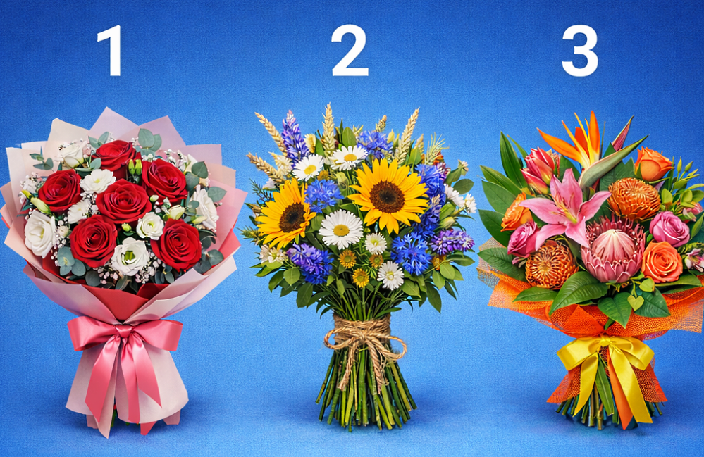 Здравствуйте, друзья! Иногда один взгляд на картинку может сказать о человеке больше, чем долгий разговор. Наш выбор редко бывает случайным. Он отражает настроение, характер, скрытые желания и даже жизненный опыт. Посмотрите на три букета на картинке и выберите тот, который сразу притянул ваше внимание. Доверьтесь первому ощущению. А теперь давайте посмотрим, что этот выбор может рассказать о вас. Букет 1 Если вы выбрали первый букет, вы человек с глубокими чувствами и сильным внутренним стержнем. Вы умеете любить по-настоящему и редко делаете что-то наполовину. Для вас важны искренность, честность и уважение. Вы не любите суету и фальшь, предпочитая спокойствие и стабильность. Такие люди часто выглядят сдержанными, но внутри у них целый мир эмоций. Вы можете долго терпеть, но если вас обидели, забыть это непросто. При этом вы надежны, умеете поддерживать близких и всегда стараетесь держать слово. В жизни вы цените проверенные вещи и людей, которым можно доверять. Букет 2 Ваш выбор пал