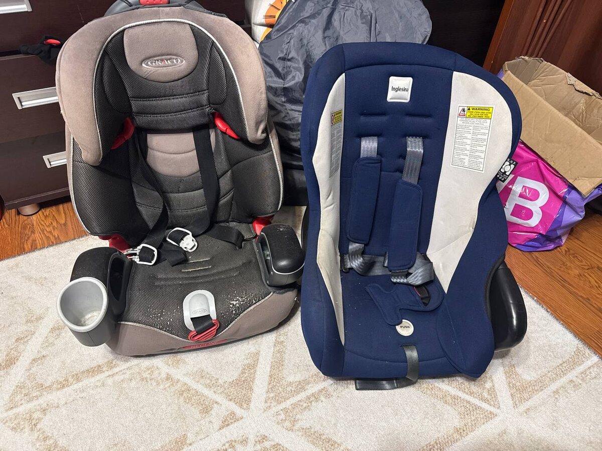 Отдам даром 2 кресла и пакет вещей на девочку 104-116р кресла 0-13кг и втрое 14-36кг