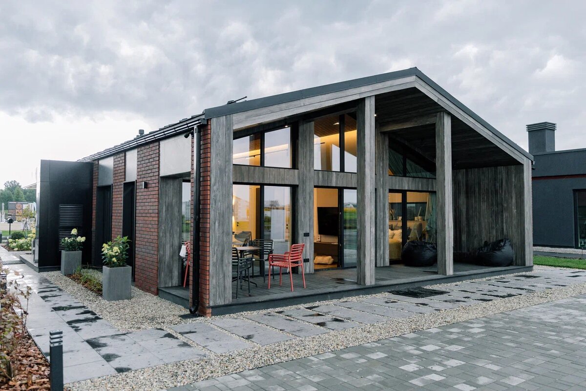 Помните дом «Хуго»? Тот самый, что покорил нас на выставке загородной жизни в Сибири «Самый стильный дом на Open Village Siberia 2025»? О неём мы писали здесь Сегодня мы заглядываем внутрь! И да, интерьер оказался таким же продуманным, уютным и стильным, как и фасад. Именно фасад задает тон восприятия дома. А на самом участке есть уютная зона отдыха, где можно расслабиться и полюбоваться видом на дом и природу. Наши партнеры строительная компания «Плотникофф» гармонично соединили современные технологии каркасного строительства и премиальную отделку облицовочным кирпичом «ЛИКОЛОР». Для создания этого архитектурного образа использованы два вида облицовочного кирпича из коллекции «Тайга Вулканы»: «Сердце вулкана» 1НФ — тёплый, живой оттенок, будто застывшая лава. Он дарит дому характер и глубину. «Чёрное сокровище» 1НФ — насыщенный, почти бархатистый чёрный, который создаёт смелые контрасты и подчёркивает детали. Результат? Дом, который хочется рассматривать и в котором хочется жить!
