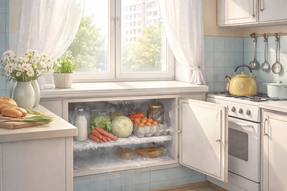 Зайдите в любую сохранившуюся пятиэтажку постройки начала шестидесятых, и на кухне вы обязательно наткнетесь на этот странный артефакт — деревянные дверцы под подоконником, из-за которых зимой тянет нещадным холодом. Молодежь, покупая такие квартиры под ремонт, первым же делом закладывает эти ниши кирпичом или заливает пеной, чертыхаясь на «глупых советских строителей». А зря. Глупости там не было, был холодный, математический расчет и попытка выжить в условиях, когда быт трещал по швам от перемен. Называть это «хрущевским холодильником» начали позже, а для инженеров тех лет это был просто «встроенный шкаф под окном». Понимаете, какая штука: 1956 год, страна только-только начинает приходить в себя, принимается постановление о развитии жилищного строительства, и людей пачками переселяют из подвалов и коммуналок в собственные квартиры. Это был шок, эйфория. Но была и проблема — есть в этих квартирах было нечего в плане хранения продуктов в прок. Первый массовый бытовой холодильник в СССР