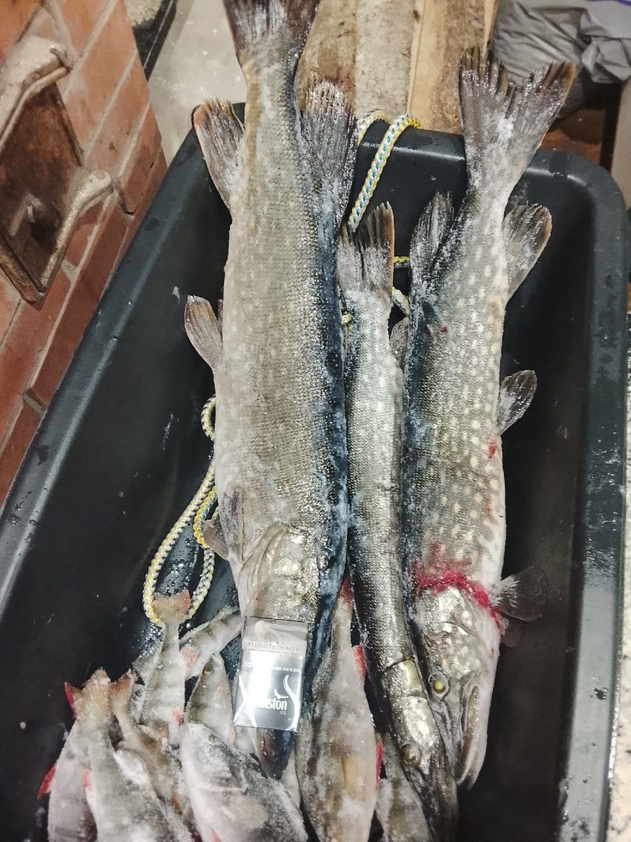 🚩 Ладожское озеро, южный берег, Креницы 12 км. Окунь неохотно клевал, я 26 хвостов, напарник почти чемодан Щучка поклевала, но не много, всего 5 хвостов 1.2 - 2шт, килошки 2 и одна на 3.6 кг. В флаги не упирались! Окунь брал в метров 500 от берега около больших торосов!