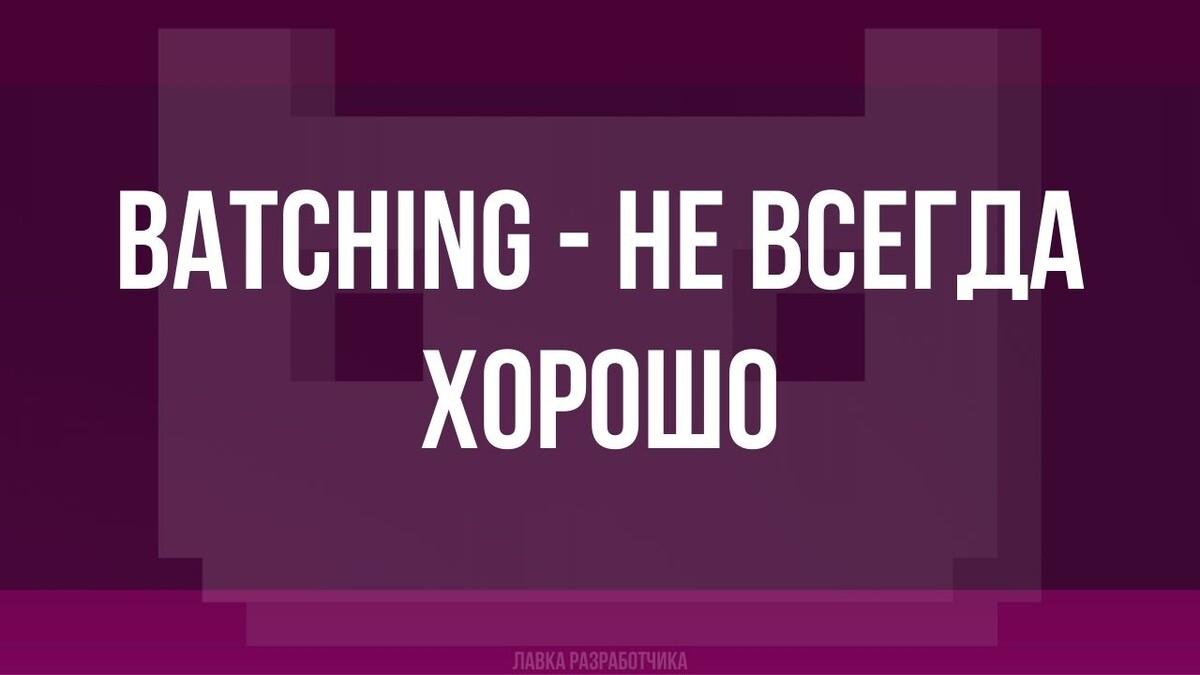 Батчинг - это способность движка объединять объекты с одним и тем же материалом, находящихся примерно в одном месте на экране, с лимитом на количество вершин, объединять в один меш, дабы отрисовать в один дроукол (вызов отрисовки). Бывает статический батчинг (объектов, помеченных static в редакторе), есть динамический. И всё это в сумме звучит очень привлекательно, ведь меньше дроуколов - выше фэпээсы. Но есть нюанс, а именно - динамический батчинг. При статическом батчинге, меш выстраивается единожды при старте сцены, поэтому тут всё хорошо. А вот при динамическом - каждый кадр, при чем на CPU. Отсюда вырастает узкое горлышко системы: если материал будет один (например палитра для лоуполи визуала), а объектов сотни/тысячи с динамическим батчингом, то есть ненулевая, а вполне ощутимая вероятность, что CPU целевого устройства подустанет и будет дропать FPS. Особенно на слабеньких девайсах. Говорят юнити это старается нивелировать жестким ограничением количества вершин (~300), но узко